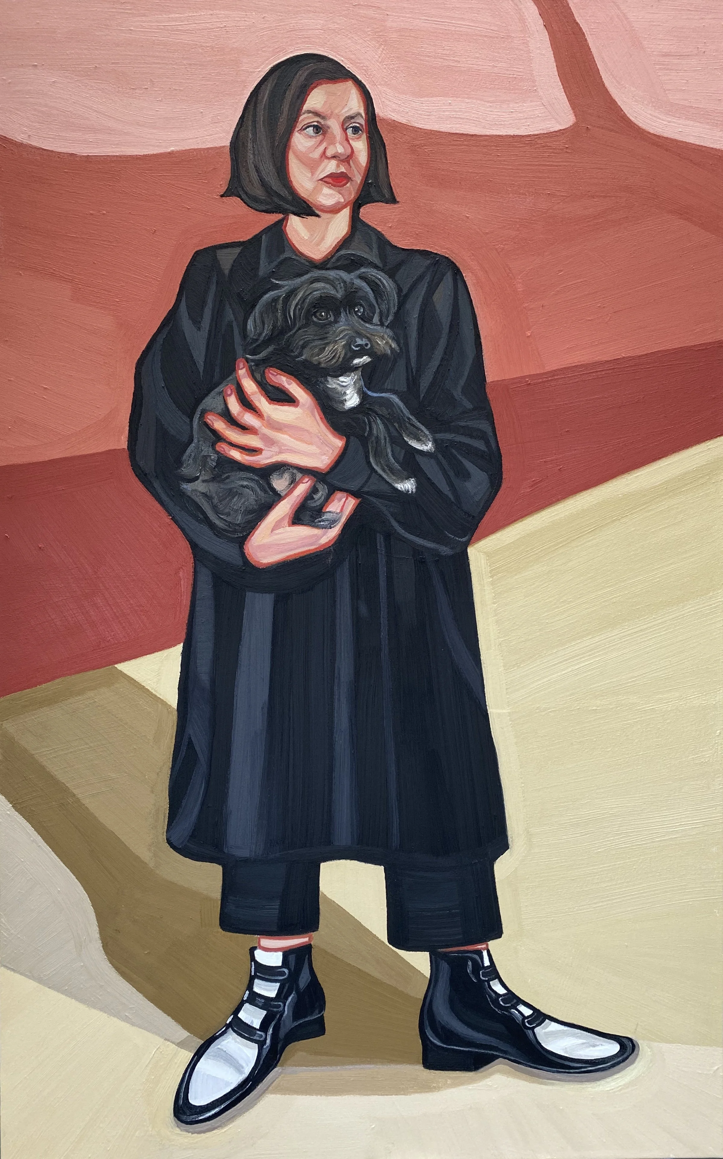 For a long time, dog art had been seen as old-fashioned paintings of British royals and their dogs, or the cliche gimmicky paintings of dogs playing poker, for example. Pamela felt that there was much more interesting and sophisticated artwork being done by contemporary artists, who also have dogs that have played an important role in their life. These pieces, she feels, reflect that special human-dog bond.