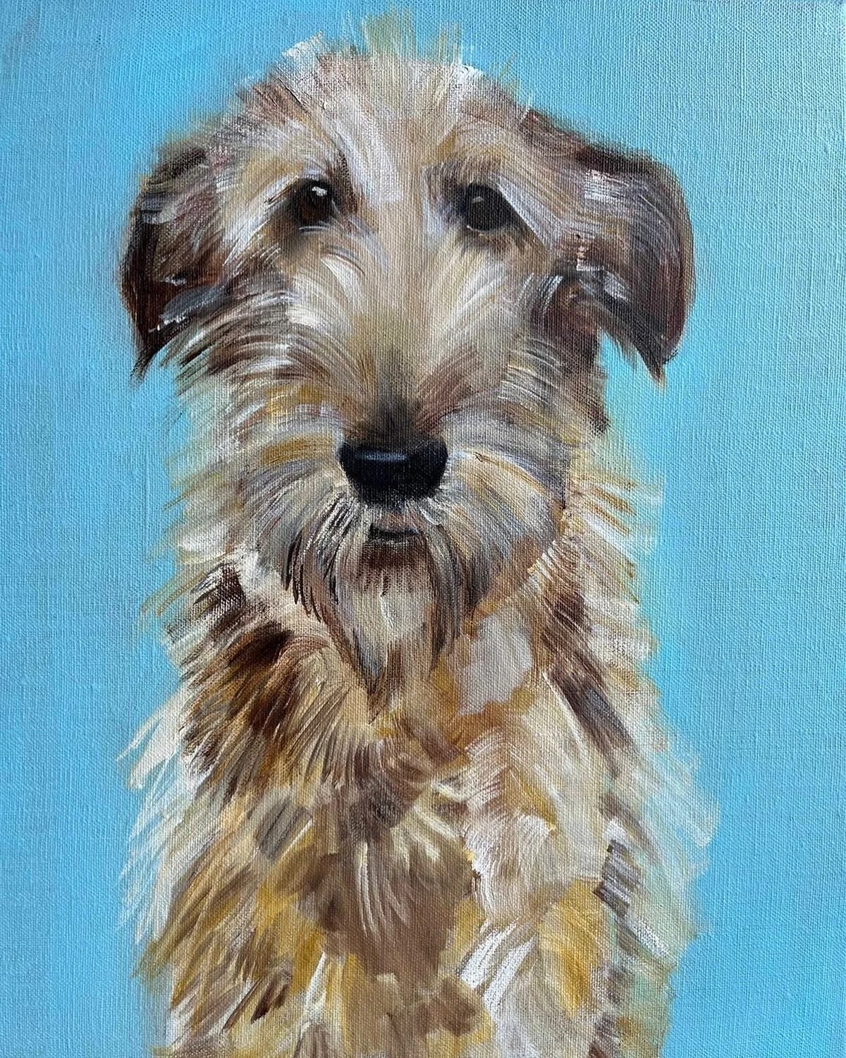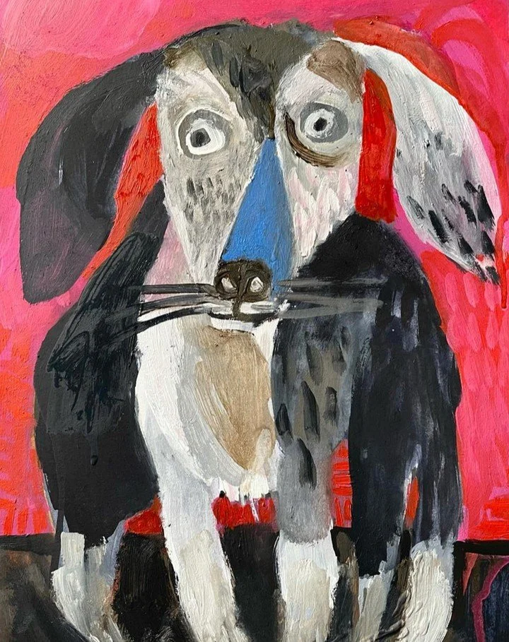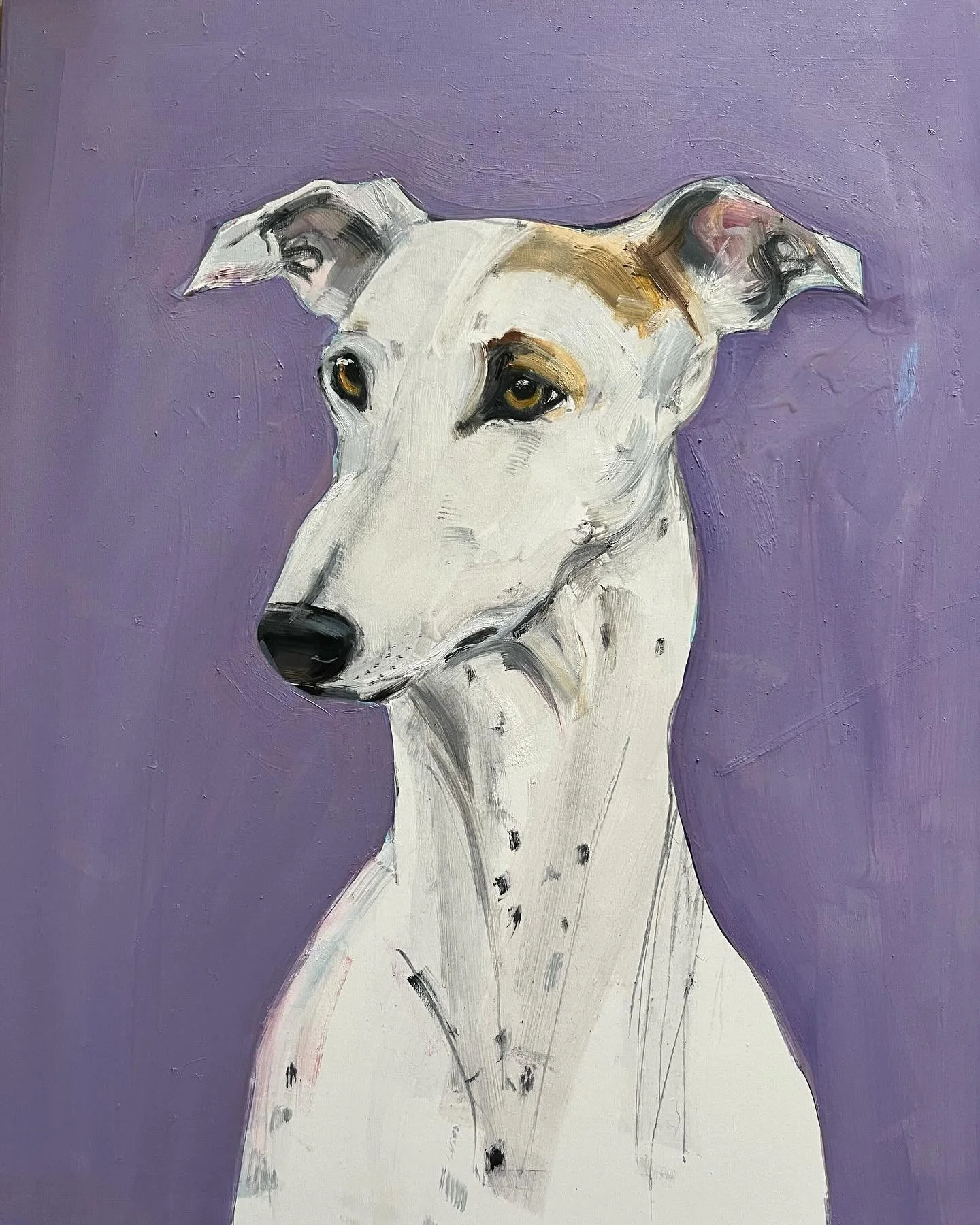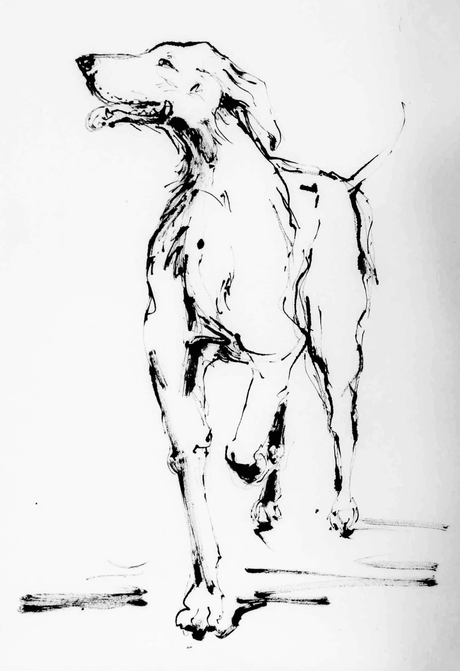 Sally Muir is an artist, author, and former knitwear designer. At the knitwear business she co-founded, Muir & Osborne, she worked for years as a designer and author. They produced high-fashion pieces that were worn by the likes of people such as Princess Diana. Along with her partner, Joanna Osborne, they also published books on pet accessory knitting patterns, dog-centric knitting pattern books, and a children’s book. This later propelled Sally to begin illustrating dogs while attending art school, and even after her graduation in 2003. Since then, Sally’s artistic muse has continued to be dogs, displaying them in a variety of mediums, which can be found in her book “A Dog A Day,” and her latest, “Old Dogs.” She is also a frequent volunteer at Galgos Del Sol, a dog rescue charity in Spain.
